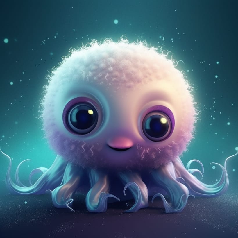 Thalira, a young and inquisitive Cephafluffian, had always been fascinated by the ancient history of her irradiated home planet, Lumaflux. Her pearlescent white skin shimmered as she navigated through the ruins of a long-lost civilization, her hundreds of wispy tentacles propelling her gracefully through the air.