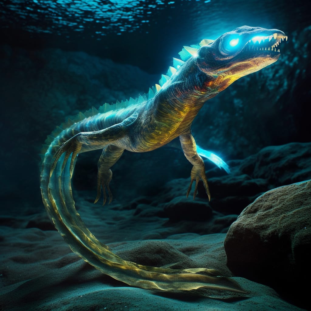 In the heart of the planet Lumara, deep within its labyrinthine caves, lived a community of bioluminescent creatures known as Lumiphores. Their bodies, elongated and slender like sea serpents, pulsed with a radiant glow that painted the cave walls with a kaleidoscope of colors. This was a world where light was language, emotion, and life itself.