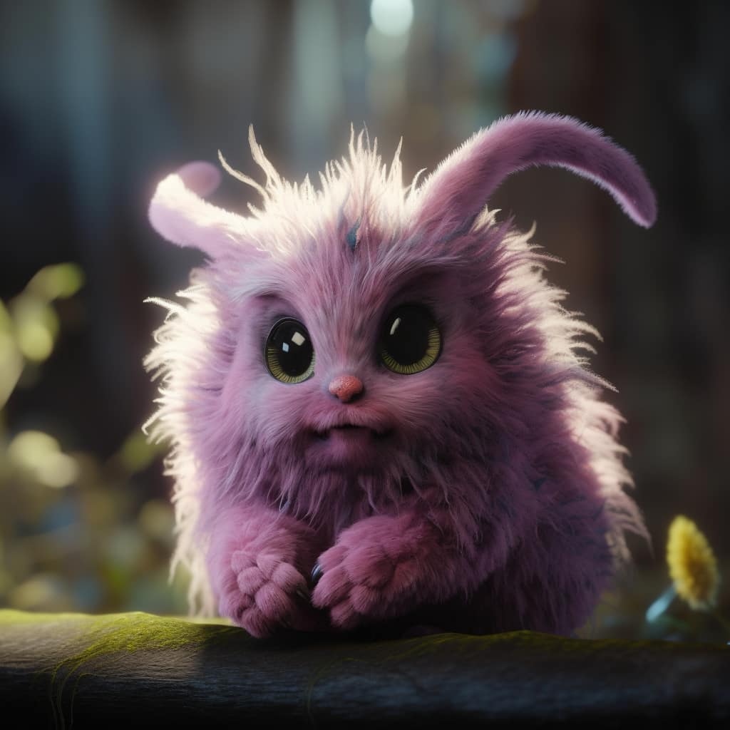 In the heart of the Chromatic Forest, a family of Bumblepuffs lived a carefree and colourful life. These small, round creatures had fluffy pink and purple bodies, four short legs with furry paws, and curved antennae that resembled rabbit ears. Their faces were adorned with large, innocent eyes, a tiny button nose, and a wide smile that revealed rows of sharp, but harmless, teeth.