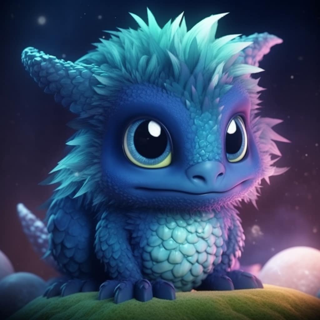In the far reaches of the Zerian galaxy, there was a peaceful planet called Enthara. Enthara’s verdant forests and shimmering lakes were home to many unique creatures, but none as captivating as the Aquerigon. These dragon-like beings had fluffy indigo and teal bodies, with large wings that could carry them gracefully through the skies.